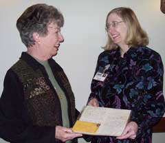 The Shenandoah Valley Genealogical Society (SVGS) was pleased to announce the acquisition of three historical letters relating to events in Winchester, VA, during the Civil War. At the general meeting on February 4, 2009, Lois Marbert, Records Chair for the Archives Materials Fund, presented these letters to Stewart Bell Jr. Archivist, Rebecca Ebert. They will be added to the Archive’s Civil War Collection. The Stewart Bell, Jr., Archives is located in the basement of the Handley Regional Library, 100 W. Piccadilly St., Winchester.